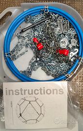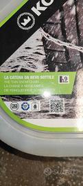 Catene da neve Koenig,le migliori e più affidabili insieme alle Weissenfels,nuove mai utilizzate. Maglie da 9mm. Le misure cui possono andare bene sono riportate nell'immagine cerchiata in giallo. Le catene non sono mai state montate solo la scatola in plastica è un po' graffiata a causa dei vai spostamenti in garage. Vendo a 40 euro. Io le ho pagate 65 quindi,per favore,a chi non interessano,passare oltre. No perditempo.