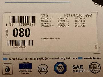Vendo Catene neve Konig CG-9 080 NUOVE, mai utilizzate. Ritiro a Sesto San Giovanni (MI) zona stazione FS.