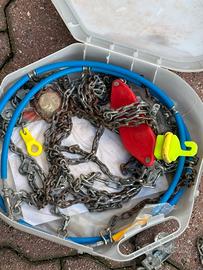 Catene da neve Konig ultra zip 9 mm gruppo 90 . Usate 1/2 volte in perfette condizioni. Una volta messe si tirano autonomamente. Tabella musure pneumatici visibile in foto