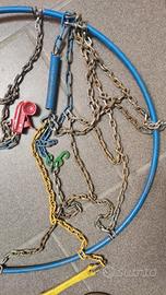 Come da foto catene da neve per auto, facili da montare, come indicato sulla confezione, in acciaio.