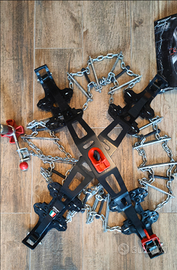 Catene da neve Maggi Trak 211. Utilizzate una sola volta. La scatola che le custodisce è leggermente rovinata per via dei vari trasporti invernali ma ancora efficiente. Essendo molto pesanti ed ingombranti, è preferibile una consegna a mano. Nelle foto allegate sono presenti le misure dei vari pneumatici abbinabili