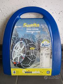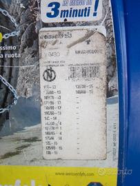 Catene da neve per gomme da 155/80 (esempio) montate su Fiat Panda 169 dal 2003 al 2012 penultima serie. Come si vede dalle foto sono nuove e non sono mai state usate. Nella foto si possono evidenziate tutte le altre dimensioni di pneumatici adatti. Comprensivo di libretto d'istruzioni e valigetta di contenimento in plastica. Vendo a 20€