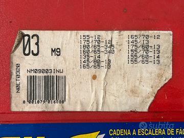Vendo catene neve usate ma ancora efficienti. Per tipologie auto/gomme vedere elenco pneumatici nella foto.