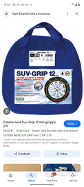 Vendesi Catene SUV GRIP 12 mm gruppo 219 praticamente nuove, inutilizzate, MAI APERTA confezione, anzi ancora sigillata. Solo ritiro. NO spedizione.