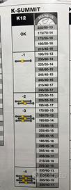 Adatte per gomme 225/60-13 175/70-14 175/55-16 195/50-16 215/45-16 oltre a molte altre misure come da specifiche riportate in foto, previa apposita regolazione.