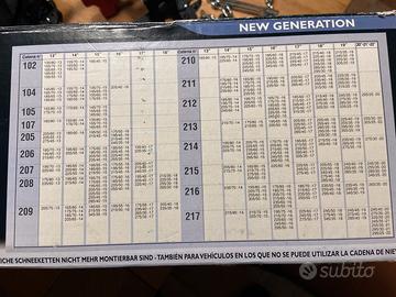 Vendo catene track 210 nuove mai usate , acquistate per volkswagen GOLF 8- 8.5, con pneumatico 225/45/17 ma possibile montarle anche con altre misure CONTROLLARE IN FOTO LA TABELLA DELLE MISURE DEI PNEUMATICI COMPATIBILI.