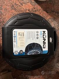 Vendo catene konig CG 9 104. a tensionamento automatico Compatibile con diverse misure di pneumatici ( vedi foto ) Mai usate . Vendo per cambio auto.