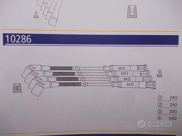 Per BMW 316g (12/95>08/2000),316i (07>93>08/2000),318i (10/93>10/99),Z3 1.8 (10/95>10/98) e Z3 1.9 (07/98>01/2003),vendo una serie di cavi candele.Prodotto di alta qualità.