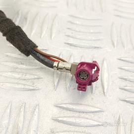 Cavo antenna FAKRA originale BMW Serie 2, compatibile con le versioni Active Tourer F45 prodotte dal 2014 al 2018. Questo cablaggio è identificato con codice principale OEM 9339190-01 e codice secondario stampato 9323419.Si tratta di un cablaggio antenna con connettori FAKRA Z femmina angolati, tipicamente impiegato per sistemi multimediali, GPS, radio DAB o antenne MIMO, posizionato nella parte anteriore sinistra del veicolo.Il cavo è stato smontato da BMW Serie 2 F45 216d Active Tourer ed è in ottime condizioni. Interamente rivestito in tessuto isolante OEM anti-scricchiolio, presenta due connettori rosa di alta qualità con schermatura metallica e doppia linea coassiale.È pronto per il montaggio diretto, senza modifiche, ed è perfettamente compatibile con tutte le versioni benzina, diesel e ibride plug-in su piattaforma UKL.Conosciuto anche come cavo antenna GPS sinistro, cablaggio multimediale sinistro, antenna radio sinistra, doppio cavo FAKRA originale BMW e a livello internazionale come FAKRA left antenna cable, GPS coax wiring harness, radio antenna lead, multimedia cable BMW F45.