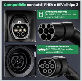 Ricarica ad alta velocità da 7,2kW: Il cavo ricarica tipo 2 supporta fino a 7,2kW, permettendo di caricare il veicolo in modo rapido ed efficiente, riducendo i tempi di attesa. Nota: ① Non è un cavo di prolunga; collega solo la porta di ricarica del veicolo alla porta di ricarica della stazione di ricarica, non può collegare altri cavi. ② La potenza di ricarica dipende dall'auto e dalla wallbox. Verificare la potenza massima se non corrisponde alle specifiche