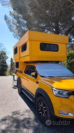 Vendo cellula abitativa per Pickup doppia gabina, rialzabile elettronicamente, attraverso doppio radiocomando sia a pile che a filo. Dentro la cella grande spazio vivibile, confortevole, areata e fresca, con visibilità a 360 gradi grazie alle sue 8 finestre scorrevoli con zanzariera. Letto ampio 170x200 sempre montato a mansarda con altezza di 100 cm, più area living con cucina tavolo e sedute. Acquaio con acqua calda sempre disponibile. Cucina con fornello a gas . Pompa acqua più polmone, per avere un flusso di acqua sempre a disposizione adeguata. Caldaia gas 8 litri sempre pronta all' uso marca Vevor Doppie bombole gas 5 litri per non rimanere mai senza. Riscaldamento Sunster 5Kw con serbatoio gasolio in acciaio 15 litri . Marmitta silenziata Inverter 3000 watt 400 vatt panelli solari 2 Batterie 90 Ah gel prese USB . Luci interne led Luci esterne su tre lati con relativa accensione separata. Wc chimico 365 porta potti da 20 litri, a scomparsa. Frigorifero e congelatore Vevor 50 litri. Doccia calda interna ed esterna. Gavone acqua 110 litri Recupero acqua 110 litri possibilità di ricarica batterie cella attraverso alternatore auto. La cella è studiata per dare spazio alla vivibilità di due persone nella funzione fruibile delle loro diverse e coeve attività all'interno. L'ampia altezza all'interno della mansarda permette di stare tranquillamente seduti in posizioni comode sfruttando ancora una soddisfacente distanza del soffitto anche a persone di statura grande senza togliere comodità o picchiare la testa nel soffitto, così da poter svolgere anche attività di salotto. La cella rimane tutta nella sagoma del Pick up. Altezza da terra compreso il Pick up in viaggio chiusa cm 224, larghezza esterna 198 cn lunghezza 335 cm altezza solo cella 150 sbalzo sul tetto cm 165. Peso 650 kg circa Piedi per scaricare e caricare la cella. Se cercate qualcosa economico ma funzionale e comodo questa può essere per voi. Vendo esclusi