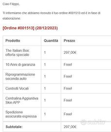Vendo centralina per auto Italian box, non sto qua a spiegare le caratteristiche di aumento potenza o risparmio benzina guardatevi il sito e trovate tutto. la centralina va bene per qualsiasi auto ed è riprogrammabile compresa garanzia 10 anni.