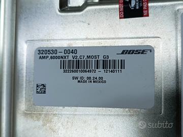 CENTRALINA AMPLIFICATORE AUDIO BOSE 2012 AUDI A6 C7/A6 C6/A8 D4 4G0035223C CE3 Note del venditore : NON SEI SICURO? CONTATTACI... Paese di origine : Messico Parti auto d'epoca : No Tipo : Centralina Codice ricambio originale OE/OEM : 4G0035223C, 4G0035223A, 322260-0100, BOSE, BGE-001 Marca : Audi Compatibilità universale : No Garanzia produttore : 1 mese Ricambio ultra performante : No Richiede programmazione : No PER RISPONDERE ALLE DOMANDE DI COMPATIBILIT ABBIAMO BISOGNO DEL NUMERO DI TELAIO OPPURE DI UNA FOTO DEL LIBRETTO DI CIRCOLAZIONE DEL VOSTRO VEICOLO Se hai bisogno di sapere se questo pezzo è valido per il tuo veicolo, puoi inviarci il numero VIN del tuo veicolo. Possiamo controllarlo. GARANZIA: - Ricambio usato testato e garantito proveniente da una macchina incidentata ma verificato con attenzione dai nostri tecnici. - Garanzia di 1 mese dalla data di consegna. ------------SODDISFATTI O RIMBORSATI------------- Rimborso di ciò che ricevi se non corrisponde a ciò che hai ordinato! - Viene fornito come da foto- SPEDIZIONE: - Pronta consegna - Spedizione in tutta Italia con Gls Espress 24/48H Per qualsiasi informazione aggiuntiva o chiarimento contatta: Ricambi Centre Cornedo Vicentino Via Monte Verlaldo,17/c 36073 Italy Rif.356370673489