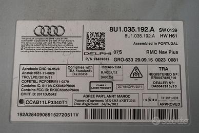 Codice ricambio: 10007350 Centralina Autoradio CD/DVD/GPS/Navigatore, Audi, Q3, 2012-2018, 8U1035192A, 28409089, 2.0tdi, Diesel