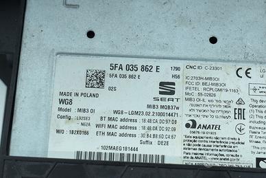 Codice ricambio: 10005919 Centralina Autoradio CD/DVD/GPS/Navigatore, Seat, Cupra Formentor, 2021>, 5FA035862E, 1.5tsi, Benzina