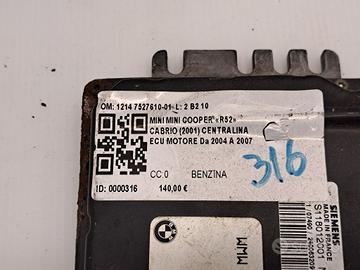 CENTRALINA MOTORE MINI Cooper 1° Serie 1214 7527610-01 benzina 1598 (00>06)