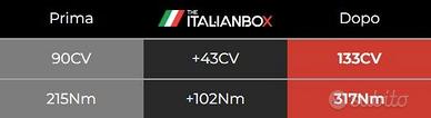 Perché scegliere proprio la centralina aggiuntiva The Italian Box? Il chip tuning box Made In Italy è la miglior centralina aggiuntiva sul mercato per il tuning motore diesel o benzina. Puoi regolare The Italian Box comodamente dall’abitacolo della tua auto, tramite un’APP dedicata – inclusa nel prezzo -, scegliendo tra 4 differenti driving maps, di cui una completamente configurabile.