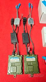 Vendo kit centraline ballast Xenon fast start canbus 55W di alta qualità con una coppia di lampade tipo H7 da 55W e 5000 Kelvin (fascio di luce bianco) e piattello in metallo di ottima qualità usate è un'altra coppia di lampade uguali ma nuove. Perfettamente funzionanti, sono di tipo 55W fast start quindi emettono il fascio di luce ottimale e nel giro di alcuni secondi dall'accensione, essendo canbus evitano il taglio dell'alimentazione e la segnalazione di avaria lampade sul quadro strumenti. Erogazione dell'alimentazione pulita e costante, accoppiate con bulbi di qualità non danno problemi di sfarfallamento come invece fanno kit più economici. Ideali per installazione su fari lenticolari.