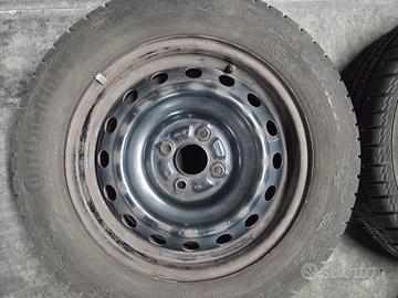 4 cerchi in ferro da 15 pollici 5 1/2 Jx ET45 montaggio Fiat Opel in ottimo stato. Gli stessi sono completi di gomme invernali dot 3615 con misura 175-65-15. Una gomma presenta una foratura sul fianco come evidenziato in foto.