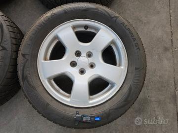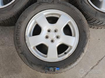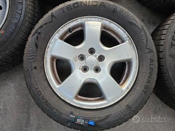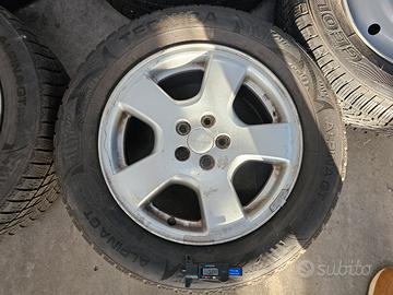 Vendo cerchi da 16 pollici foratura 5x100 ET 48 originali Subaru per Forester anno 2002 completi di gomme termiche con 5 mm rimanenti + ruota di scorta (mai usata e ben conservata).