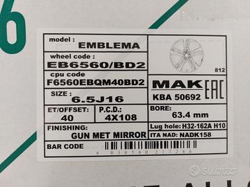 Cerchi 16 Ford Fiesta B-Max EcoSport Mazda 2 4x108