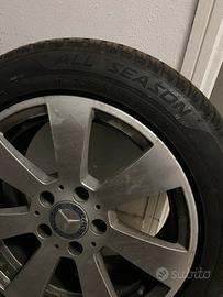 Vendo cerchi in lega originali mercedes compresi di pneumatici 4 stagioni ancora in ottimo stato come si puo vedere dalle foto, misura 205/55r16 anno 2022 . I cerchi hanno attacco 5x112 ed erano montati su una classe c . Vendo per passaggio a misura piu grande e questi non mi servono piu. I cerchi non presentano segni evidenti(solo solo sporchi) e sono dritti e bilanciati . Non spedisco . Solo ritiro a mano. Il prezzo comprende cerchi + gomme.