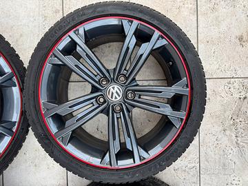 Vendo set di 4 cerchi grigio e rosso montati su Vw Golf GTI 7.5 originali ed in perfette condizioni. Montano gomme 225/40 R18. Edizione limitata solo per il mercato tedesco.