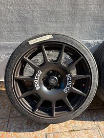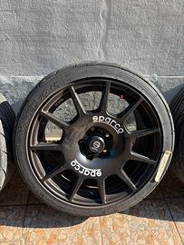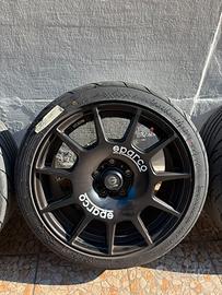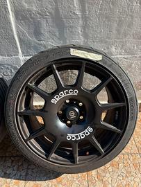 Vendo 4 cerchi sparco Terra nero opaco Usati con 2.600km all’attivo con pneumatici nankang ns2r con specifica Toyota GR. Misire pneumatici 225/40 R18 Completi di sensori ML510 8Jx18. H2. ET 35 Senza un graffio PREZZO : 1150€ Prezzo trattabile.