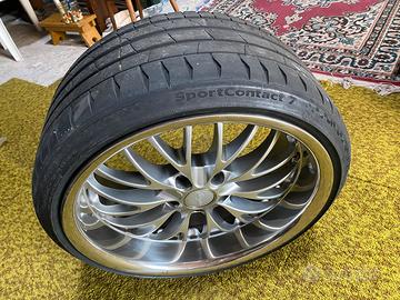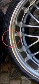 Vendo 4 cerchi Brejton con canale rovesciato in acciaio con attacco BMW, nello specifico: 2 cerchi da 8 1/2 x 19” ET 30 5x120 con gomme Bridgestone Potenza 235/35zr19 91Y al 30% 2 cerchi da 9 1/2 x 19” ET 35 5x120 con gomme Continental Sport Contact 7 255/30zr19 al 95% Un cerchio è graffiato ( vedi foto ) gli altri sono ok