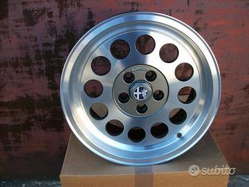 N. 4 cerchi in lega,nuovi,di attuale produzione italiana ,per vetture alfa romeo giulietta Turbo Delta, alfetta gtv6,alfa 75 t.s. turbo 3.0V6 Milano ecc., 164 ecc. utlizzabili anche su altre vetture gruppo fiat alfa lancia.Misura 7x15,attacco 4x98 ed 5x98 et 25,full diamond,completi di stemmi centrali Alfa Romeo .Set n. 4 cerchi Euro 1000 + spedizione Italia: euro 60, Isole euro 80 .Whell rim alu felgen llanta jante .Altre foto su richiesta,anche WhatsApp altre foto www.cerchiautodepoca.com.Info 3472511545