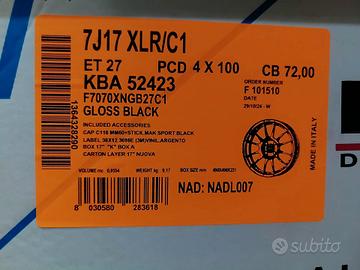 PROPONGO IN VENDITA4 Cerchi in lega NUOVIORIGINALI MAK XLRDescrizione OMOLOGATI NADCERCHIO XLR Gloss BlackDiametro: 17Canale: 7JET: 27Fori: 4X100Foro Centrale: 72Compatibili con- Abarth 124 Spider , Abarth GRANDE PUNTO , Abarth Punto EVO , Abarth 500e ABARTH , Abarth 500 ABARTH- Honda INSIGHT , JAZZ , JAZZ CROSSTAR , JAZZ HYBRID- Hyundai i10 , i20 , i20 Active , BAYON , GETZ- Kia PICANTO , RIO , STONIC- MAZDA MX-5 , Mazda 2- MINI CABRIO , CLUBMAN , COOPER S , COOPER , COUPE , ROADSTER , ONE- NISSAN MICRA , NOTE- OPEL ADAM , AGILA , CORSA , CORSA-E 4H , KARL , MERIVA- Renault Clio III - Clio IV - GRAND MODUS - MEGANE I - MEGANE II - WIND COUPE - MODUS - ZOE- SUZUKI BALENO , SPLASH , SWIFT 4H , SWIFT 4WD 4X4 4H , SWIFT 4X4 4H- Toyota COROLLA , IQ , YARIS HYBRID , YARIS- DACIA JOGGER - LOGAN MCV - LOGAN MCV STEPWAY - LOGAN - SANDERO STEPWAY - SANDERO- SMART FORFOUR II - FORFOUR II BRABUS - FORTWO III - FORTWO III BRABUS STAGGERED/DIFFERENZ - FORTWO III CABRIO - FORTWO III CABRIO BRABUS STAGGI cerchi sono Nuovi. Pronti da montare.Prezzo:630 Ritiro di Persona (prezzo QUINDI NON TRATTABILE)spedizione a carico dell'acquirentePremiumWheelsHDCell. 3444085505rispondo solo telefonicamente o anche tramite Whatsapp,NO MAIL