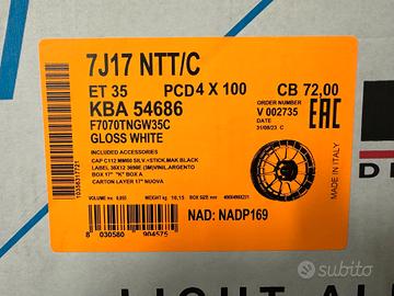 Codice ricambio: 7Jx17 ET35 4x100 CB72