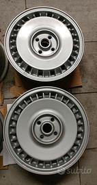 Vendo introvabili 5 cerchi originali Alfa Romeo 4 fori 6x15 pollici interasse 98 mm, sono gli optional originali Alfa Romeo Alfetta GTV 2.0 in alternativa ai cerchi lamiera con le coppette, ottime condizioni come da foto montabili da subito, mai montati dopp averli verniciati.Alle offerte assurde non rispondo.