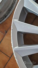 Vendo 4 cerchi in lega per alfa romeo Giulietta da 18 pollici, Come potete vedere bene dalle foto, i cerchi sono grattati sui bordi e seconda cosa, gli ho già fatti controllare dal gommista quando ho smontato le gomme, e 1 gira dritto, mentre gli altri 3 sono storti, quindi sarebbero da raddrizzare. Sono compresi di 4 coprimozzo centrale alfa romeo, nelle foto non li ho messi. vendo a 250€ trattabili