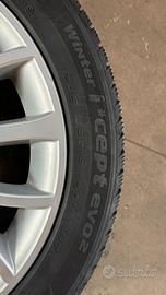 VENDO RUOTE COMPLETE BMW CON MONTATE GOMME ANTINEVE 245/45 R 18 HANKOOK, CERCHI ORIGINALI BMW SERIE 5 PERFETTI, SENZA RIGHE, COMPRESE DI VALVOLE ORIGINALI TPMS PER IL CONTROLLO DELLA PRESSIONE ARIA.