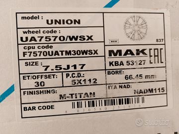 Codice ricambio: 7.5Jx17 ET30 5x112