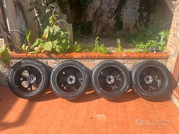 Vengo set di 4 cerchi in lega da 17 pollici marca Alcatec, iconico design a fori stile Quadrifoglio Alfa Romeo. Caratteristiche tecniche: Interasse: 5x110 (Alfa 159, Brera, Spider, Giulietta) Canale: 7.5J Offset (ET): 33 — IMPORTANTE: Grazie all'ET33 le ruote restano a filo carrozzeria senza bisogno di distanziali. Estetica perfetta e sportiva. Condizioni: I cerchi sono usati e presentano segni da marciapiede (come da foto). Sono strutturalmente integri, senza crepe o saldature. Pneumatici: Attualmente montati ma DA SOSTITUIRE, non ne garantisco l'utilizzo. Regole di vendita: Prezzo: 550€ poco trattabili. NON ricevo a casa per curiosi o perditempo. Scambio a mano in luogo pubblico o spedizione interamente a carico e cura dell'acquirente (organizzate tutto voi). Formula "visto e piaciuto". Se cercate cerchi nuovi andate in negozio, se cercate un look cattivo a un prezzo onesto, questi sono i vostri.