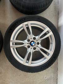 Cerchi BMW M in lega leggera da 18'' a stella styling 400 M con misure differenziate, anteriori 8 J x 18 con pneumatici 225/45 R 18, posteriori 8,5 J x 18 con pneumatici 255/40 R 18. Adatti a BMW serie 3 F30/F31/F32. I cerchi sono in condizioni molto buone. Completi di valvole di pressione originali e loghi BMW. Inclusi pneumatici Michelin Pilot Sport 4, al 30%. Prezzo leggermente trattabile. Consegna a mano.