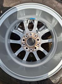 Cerchioni in lega originali BMW 5x120 7JX16 H2 da 16 pollici completi di gomme estive Momo 205 55 R16 2 al 70% e 2 al 90% con valvole TPMS originali, in ottime condizioni a 460 euro.