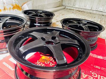 Vendo 4 cerchi in lega a canale rovesciato, colore nero in perfette condizioni, misura 7j X 16” ET 30, attacco 4x98 Fiat Alfa Romeo Lancia abarth e si adattano anche Renault 4x100 se si usano bulloni flottanti autocentranti e gli anelli di centraggio (io infatti li montavo su un Twingo RS ma è la stessa misura di Clio e Megane a quattro fori. Gli anelli di centraggio e i bulloni si trovano in qualsiasi gommista o rivenditore oppure online).