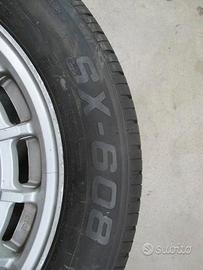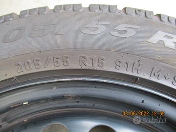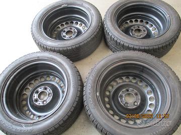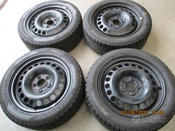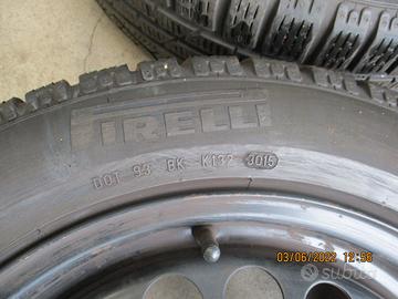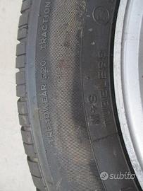 N. 4 ruote complete con pneumatici invernali Pirelli al 30%, misura 295/55/15 con cerchi in ferro misura 6 1/2 X 16 ET49 con calotte copriruota per Mercedes Classe B