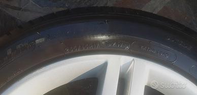 Vendesi n. 4 cerchi originali da 17'' rigenerati con relative coppette originali rigenerate e pneumatici 235/45 R17 Michelin estivi usati aventi battistrada residuo di 3,5/4 mm.