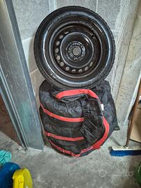 cerchi in ferro da 15 originali golf 5 e borchie , utilizzati 1 sola stagione con gomme termiche , vecchia dotazione ma ancora in buono stato