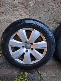 Vendo quattro cerchi originali Audi per A4, A5, A6. I cerchi sono segnati ma non hanno preso botte. Montano pneumatici 225 55 16 ormai finiti (da cambiare) ideale per secondo treno di gomme invernali.