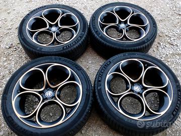 4 CERCHI IN LEGA ORIGINALI BICOLORE DORATI E NERI SENZA GRAFFI CON GOMME MICHELIN NUOVE