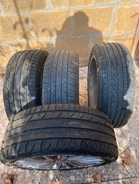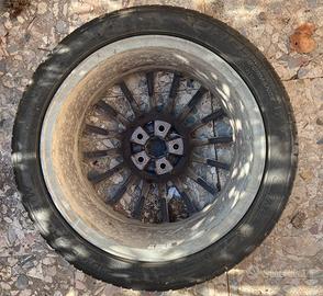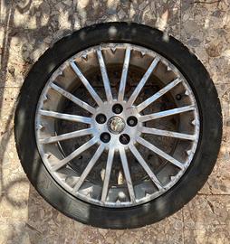 Una delle gomme è bucata/tagliata (non so). Vendo infatti prevalentemente i cerchi e le gomme ve le includo nel prezzo. Ad uno dei cerchi manca lo stemma alfa romeo rosso che era stato inserito con il silicone (anche nelle altre tre ruote è stato incollato).