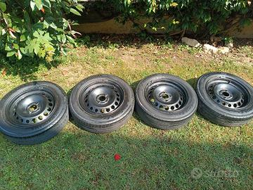 vendo set 4 cerchi in ferro del 15 con 4 gomme finite yokoama estive 185 65 R15 per Clio 4 più 4 copricerchi originali Clio praticamente nuovi e tre copricerchi neri a razze no perditempo solo consegna a mano