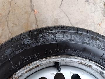 Cerchi in ferro 5 fori per fiat Doblò, con 4 gomme all season al 80% . Misure 195 60 16. Vendo per cambio auto. Ritiro a mano. Contattare tramite subito o con messaggio Wathsapp