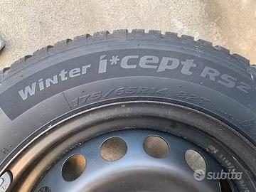 Cerchi e gomme invernali per Fiat 500, lancia Ypsilon ed altre...... Cerchi: 14 x 5 1/2 J - ET 35/38 (vedi foto) Gomme: Hankook Winter 175/65 R14 82T Cerchi usati ma integri, gomme al 30-40%
