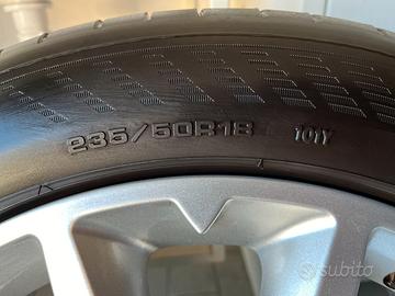 Cerchi 18" Vulcano con coprimozzo finitura argento e valvole con TPMS controllo pressione.